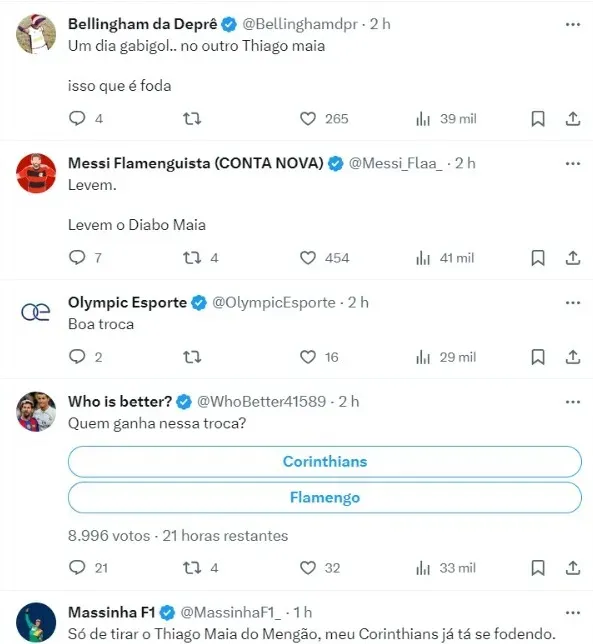 Ou seja, dois jogadores do Fla para a posição devem ser negociados na próxima temporada janela. Enquanto isso, Varela vai permanecer em 2024 e deve brigar por espaço.