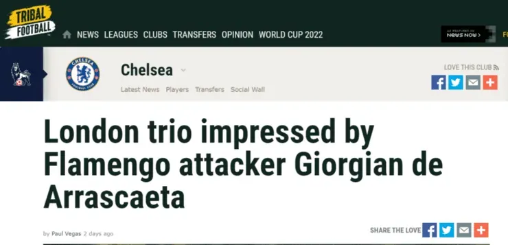 “Football.london diz que vários clubes da Premier League provavelmente ficaram impressionados com o rápido impacto de De Arrascaeta no Uruguai e, embora ele tenha 28 anos, Chelsea , Arsenal e Spurs estão tentados a fazer uma jogada com todos os seus meio-campos precisando de uma faísca”, disse um trecho da reportagem.