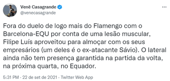 Informações do repórter Venê Casagrande (Foto: Reprodução/Twitter)