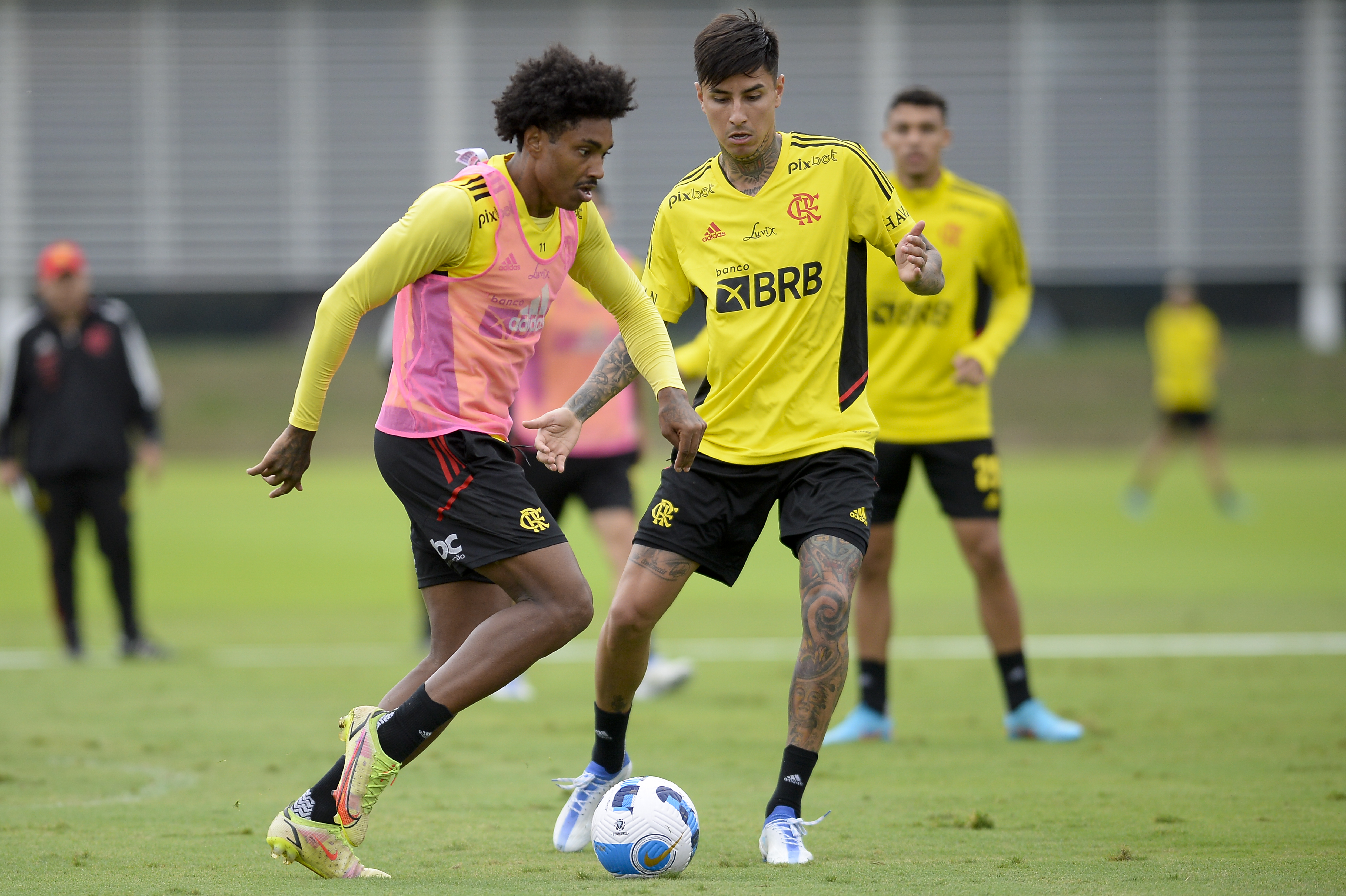 O Flamengo está em processo final de preparação para o jogo de volta das quartas de final da Libertadores. Depois do 2 a 0 na Neo Química Arena, o Rubro-Negro recebe o Corinthians nesta terça-feira (9), no Maracanã. O Mais Querido tenta se blindar da ideia de que já está classificado, para evitar surpresas do time adversário. Depois do treino desta segunda-feira (8), o mais provável é que Dorival Júnior repita o time titular da semana passada.