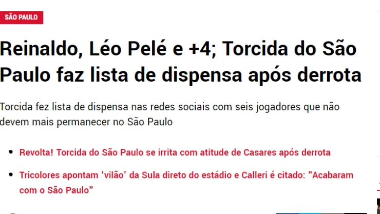 A torcida do São Paulo perdeu a paciência com alguns atletas após o vice da Copa Sul-Americana e Rafinha está incluso na lista de dispensa feita pelos tricolores. Outros jogadores aparecem, como Reinaldo, Léo Pelé, Pablo Maia, Nestor, Éder e Igor Vinícius.