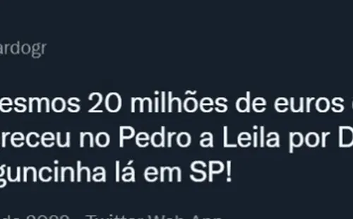 Na web, o torcedor flamenguista pede que uma proposta seja formalizada e, assim, pressione o Palmeiras, como aconteceu com Pedro. Vale lembrar que Dudu também já confessou ser torcedor do CRF na infância, algo que foi muito compartilhado nas redes sociais. Dudu recebe cerca de R$ 2 milhões por mês no Palmeiras.