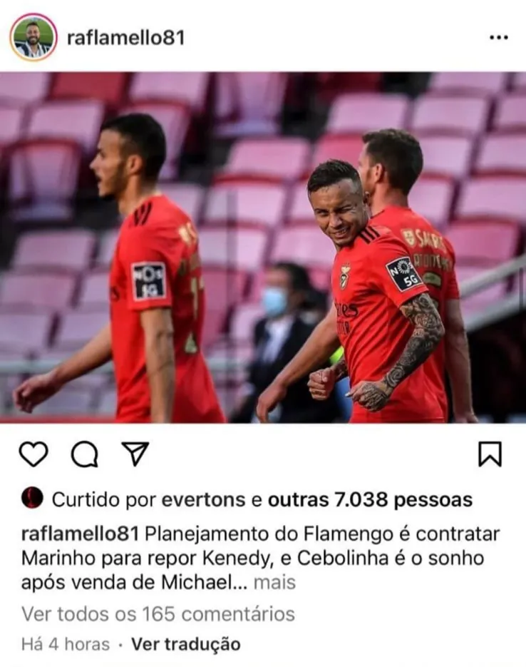 O influenciador que cobre o Mengão percebeu na hora esse “detalhe” e escreveu: “E essa curtida do Cebolinha na nossa postagem hein?”. Paulo Sousa é o grande entusiasta da contratação do atleta e quer contar com ele.