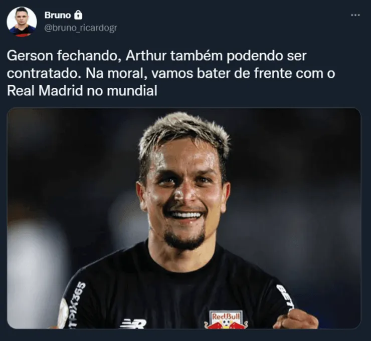 Além de Gerson, o Fla definiu outro jogador que deseja trazer: Artur, do Red Bull Bragantino. O meia-atacante tem seu nome muito bem avaliado internamente no Ninho do Urubu, principalmente pelo técnico Dorival Júnior. O treinador, inclusive, vai assinar a renovação nos próximos dias e ficará por mais tempo no comando técnico do CRF.