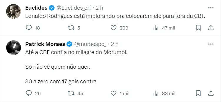 A CBF entende que, apesar da chance reduzida, seria um erro de planejamento muito grande e uma falta de respeito com os outros times que ainda têm chance de serem os campeões. Foi essa a promessa que Ednaldo Rodrigues fez aos clubes.