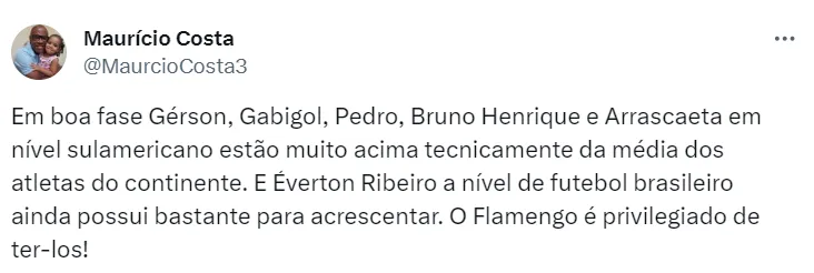 “Conversei com Gabi e Pedro a respeito e falei da possibilidade da utilização dos dois. O conjunto da obra com o Bruno passa a ter uma variável maior ou de um outro atacante. Seja o Bruno, Cebolinha, Luiz, que são jogadores mais verticais e mais agudos. Pensar no equilíbrio da equipe, pois jogar bem é jogar na fase ofensiva, defensiva, nas bolas paradas. Quando alguns desses fatores não estiverem bem, estaremos mais longe das vitórias”, declarou o novo treinador do Flamengo.