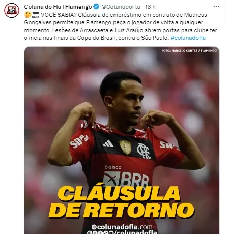 Conforme a Coluna da Fla, o meia tem uma cláusula em seu contrato de empréstimo que permite que ele retornasse ao Rubro-Negro Carioca a qualquer momento ao Clube. “Cláusula de empréstimo em contrato de Matheus Gonçalves permite que Flamengo peça o jogador de volta a qualquer momento”.