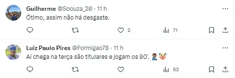 A maior reclamação se concentrou no empate diante do Fluminense, quando o Flamengo foi para o intervalo com a vantagem e grande diferença no volume de jogo. Apesar de jogar bem a primeira metade da partida, a equipe da Gávea caiu de rendimento e cedeu o placar.