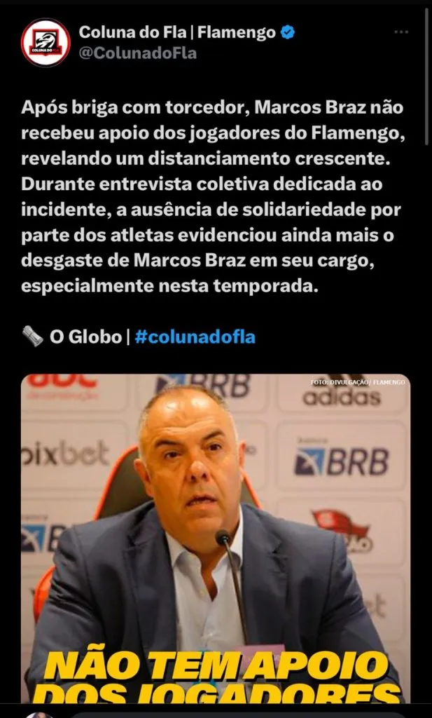 Dadas as circunstâncias, segundo também a Coluna do Fla e O Globo, a situação de Braz no Flamengo é instável, após todo o ocorrido com o torcedor, antes mesmo de Leandro dar a declaração, o dirigente não recebeu apoio dos jogadores do Flamengo, o que revelou um grande distanciamento entre eles, a solitude de Braz na coletiva de imprensa ficou ainda mais evidente. Com as declarações de Leandro, pode haver algumas movimentações na Gávea em relação a isso.