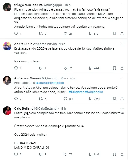 A parte que mais chamou a atenção da torcida é que segundo o Uol, o gabinete de Marcos Braz é composto por integrantes de organizadas ligadas ao Flamengo, o que revoltou os adeptos rubro-negros. De acordo com Braz, todos os funcionários são confiáveis.