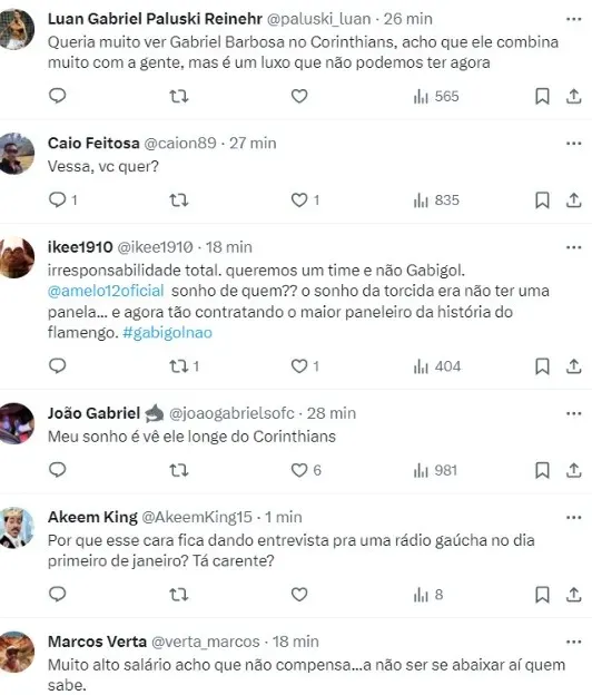O Flamengo, segundo divulgado pelo Meu Timão portal que cobre o Corinthians, foi comunicado sobre um plano B para contratar Gabigol. O clube Rubro-Negro não se opôs.