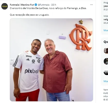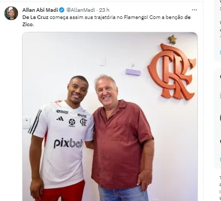 Maior ídolo da história do Flamengo, Zico recebeu De La Cruz no Centro de Treinamento do Flamengo. O encontro aconteceu na manhã desta quarta-feira (11) no Ninho do Urubu.