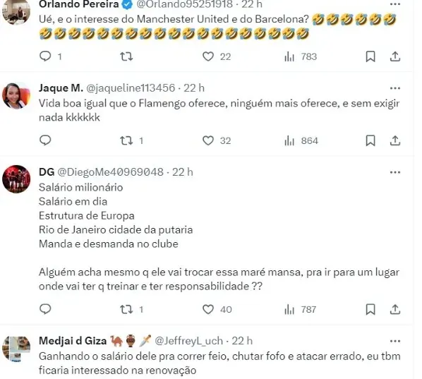 Enquanto isso, existem vários rumores sobre o futuro de Gabigol. Em entrevista ao jornal ‘O Globo’, Marcos Braz disse que não há chances de trocar Gabigol por Antony, do Manchester United. Time da Inglaterra está de olho no atacante rubro-negro