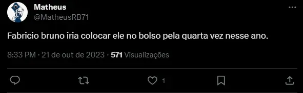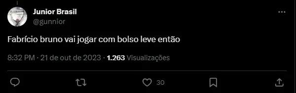 “Fabricio Bruno iria colocar ele no bolso pela quarta vez nesse ano”, “Suarez com medo do melhor zagueiro do Brasil”, “Que triste rs” e “Nossa sorte começando a mudar”, foram alguns dos comentários dos torcedores flamenguistas, com muitos relembrando as boas partidas do zagueiro Fabrício Bruno contra o camisa nove gremista em duelos recentes pelo Brasileirão e Copa do Brasil.