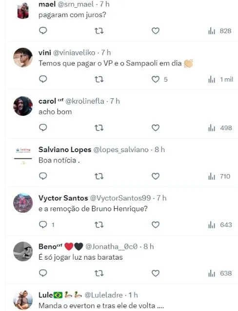 Repercussão dos torcedores do Flamengo