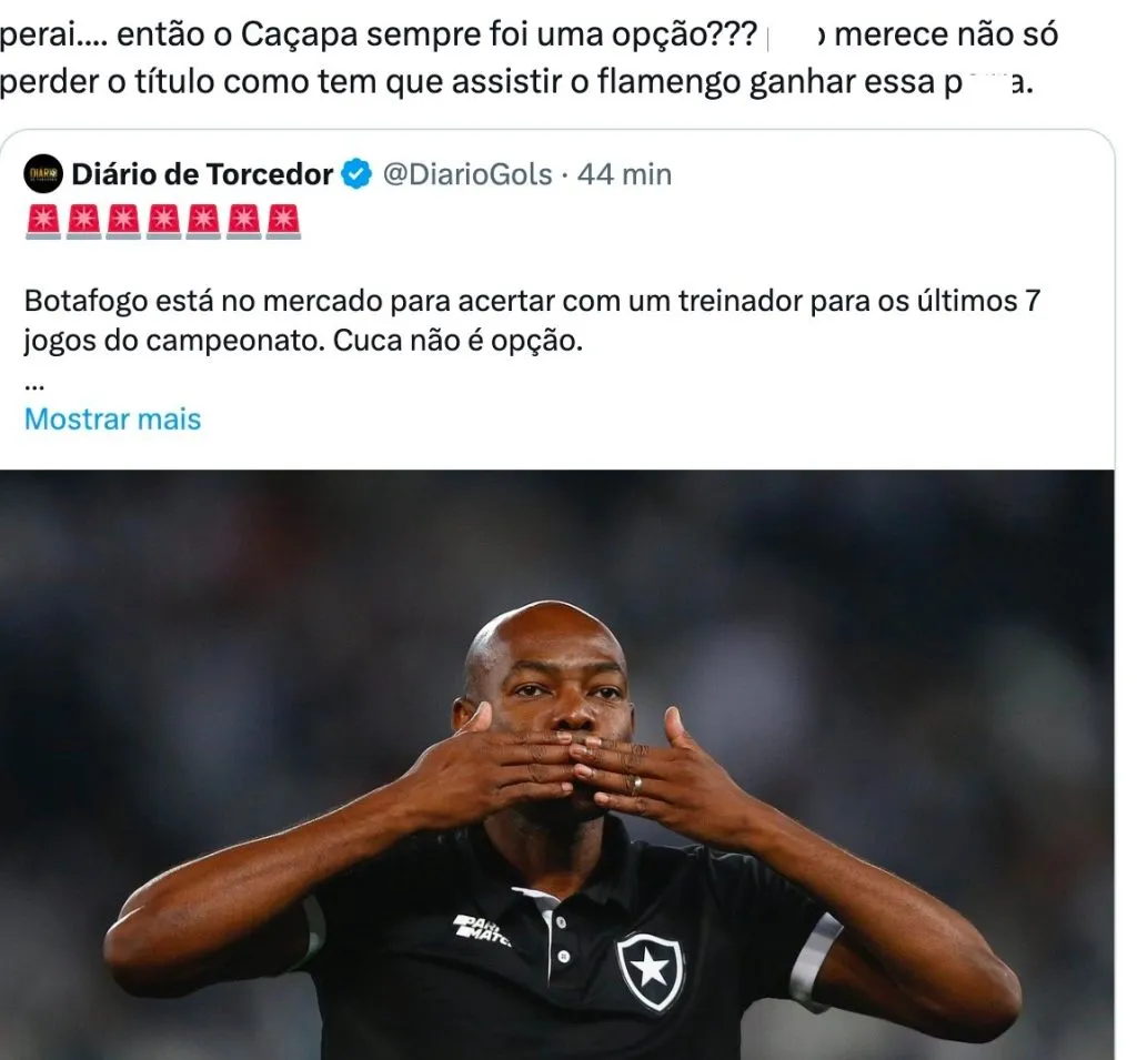 A informação da imprensa carioca consta que o treinador que vem ganhando força para ser escolhido como técnico do rival é Caçapa, profissional que trabalhou em algumas rodadas neste Brasileirão.
