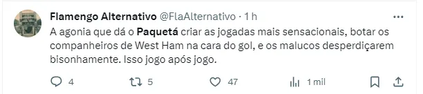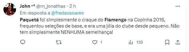 Em meio a isso, a Nação ficou sabendo de uma situação envolvendo um ex-jogador do time que até hoje é muito querido pelos torcedores. Trata-se do meio-campista Lucas Paquetá, que defende o West Ham, da Inglaterra.