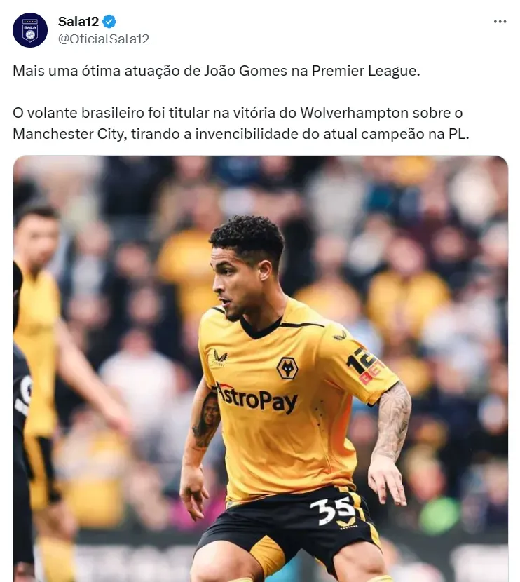 Apesar disso, o brasileiro foi um dos destaques da vitória por 2 a 1 dos Wolves diante do líder da competição – inclusive, o City perdeu a invencibilidade na PL neste confronto. O atleta de 22 anos é titular da equipe e é um dos principais jogadores do time na temporada.