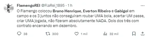 Mesmo que a expulsão tenha sido exagerada, como ele argumenta, Gabigol seguiu sendo criticado pela torcida do Flamengo. Entretanto, desta vez as reclamações se estenderam a outros dois colegas prestigiados do camisa 10.