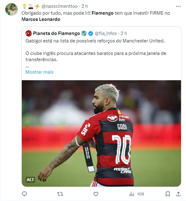Ou seja, além de conseguir levantar dinheiro o suficiente para contratar Marcos Leonardo numa possível venda de Gabigol, o Flamengo também estaria assistindo um dos concorrentes no mercado sanar a necessidade no setor do ataque.