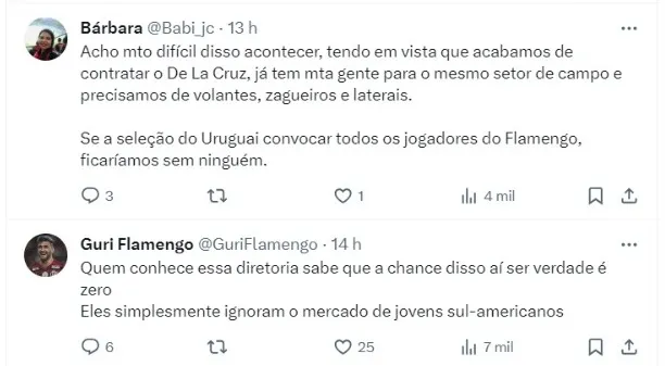 “Flamengo gosta desse jogador (Brian Rodríguez). Já sondei. O time dos Estados Unidos só aceita vender, não aceita emprestar, não aceita fazer nada”, disse, em entrevista ao Coluna do Fla.