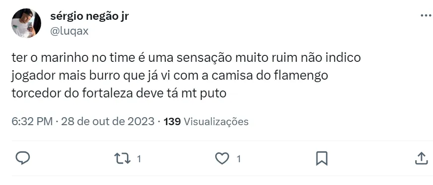 Com Marinho, o Fortaleza não conseguiu superar o time da LDU, do Equador, na final da Sula e foi derrotado na decisão por pênaltis. O atacante ex-Fla foi titular e acabou sendo substituído na etapa final.