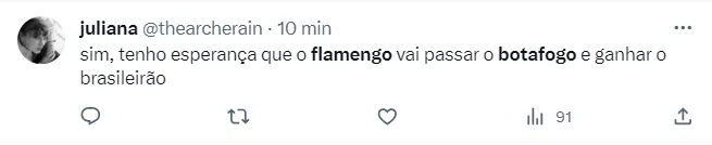 Na internet, a torcida se empolgou com a vitória do Mengão, ainda mais pelo líder Botafogo ter empatado na rodada. Vários comentaram que o Flamengo ainda tem a possibilidade de ser campeão caso o Botafogo comece a tropeçar. A diferença agora entre os dois é de 9 pontos, com mais 10 rodadas de campeonato a serem disputadas.