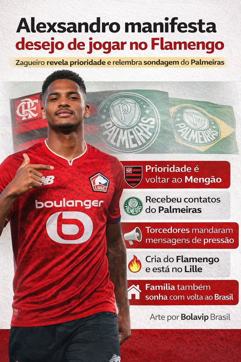 O Flamengo segue sendo um dos clubes mais desejados por jogadores brasileiros, inclusive por aqueles que atuam no exterior. Desta vez, quem abriu o jogo foi o zagueiro Alexsandro Ribeiro, atualmente no Lille, que revelou publicamente o desejo de voltar ao Rubro-Negro no futuro.