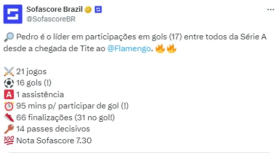 Pedro é considerado um dos grandes homens de confiança para o técnico Tite, contratado pelo Flamengo em 2023. Neste começo de temporada, o atacante vem tendo uma marca histórica de gols e quer quebrar recordes próprios.