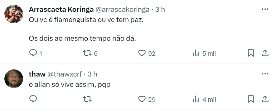 “O atleta Allan realiza trabalho de reequilíbrio muscular, controle de carga e ficará fora dos jogos pelo período curto de 12 dias”, disse o Fla na rede social. Com isso, ele deve perder os três próximos jogos da equipe.