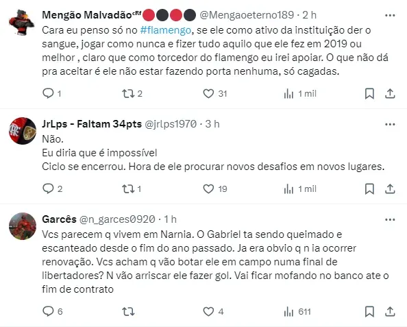 Gabigol é considerado a redenção Rubro-Negra, o jogador que fez os dois gols da final contra o River Plate em 2019, garantindo também a Liberta de 2022 e dois Campeonatos Brasileiros (2019 e 2020), além da Copa do Brasil (2022).