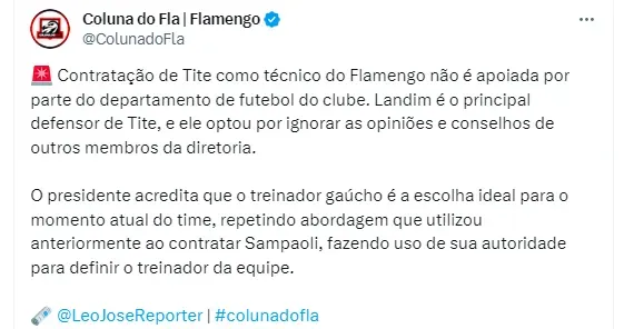 Tite sabe equilibrar bem a questão comportamental de seus atletas com o lado organizacional de suas equipes. Tem uma preferência em atuar com três atacantes, com dois de velocidade pelos lados. Caso feche com Tite, o Flamengo vai finalmente acertar na escolha de seu treinador e terá tudo para ter um 2024 muito melhor do que foi nesta temporada.