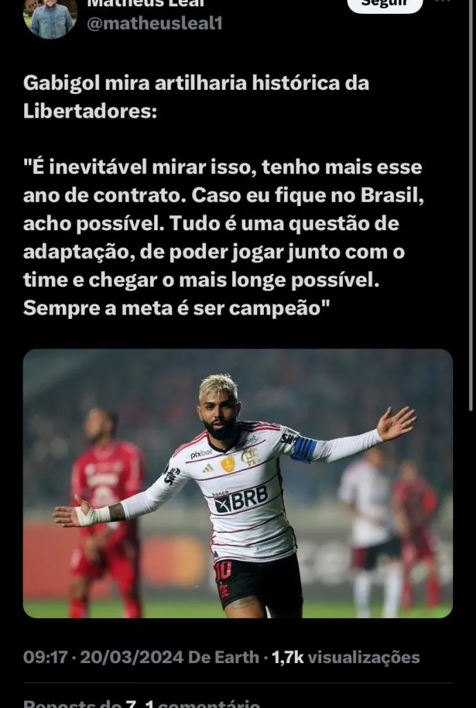 Com isso, apesar da má fase, o ídolo flamenguista tem todo o potencial para conquistar tal feito e se firmar ainda mais como um dos maiores nomes da Libertadores da América. Na real, ele precisa ‘reconquistar’ Tite, sempre bom afirmar que perder um jogador como Gabriel Barbosa não é vantajoso. Resta saber o que o treinador fará, mas caso ele entre em campo, há grandes chances dele se tornar ainda maior do que estamos vendo agora.