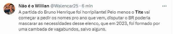 O Flamengo não soube fazer o famoso “cozinhar o jogo” e Tite também tem sua culpa nisso. Faltou também matar o jogo quando teve algumas oportunidades. O treinador também errou em outro sentido.