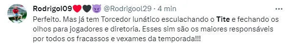 Apesar de toda confiança dos torcedores em cima de Tite, o Rubro-Negro do Rio de Janeiro acabou perdendo por 3 a 2 após começar ganhando. Everton Cebolinha e Luiz Araújo marcaram para os cariocas.