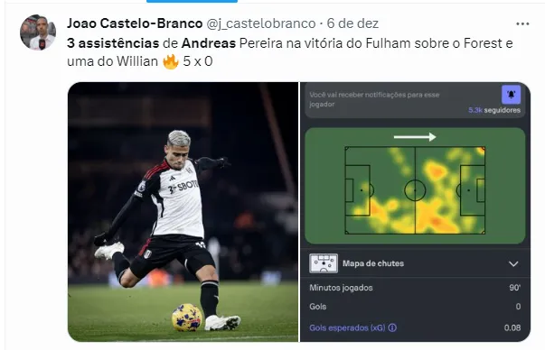 No duelo contra o Nottingham Forest, pela rodada da Premier League, Andreas foi o grande nome da partida ao dar três assistências na vitória do Fulham por 5 a 0. Em meio as especulações de mercado, ele também virou assunto no CRF.