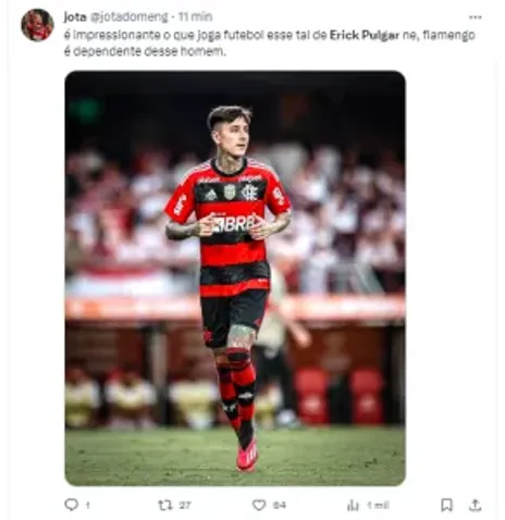 "Primeiro tempo com muito volume e com muita posse de bola. Se a gente caprichar no último passe dá para fazer outro gol"., disse Pedro na saída de campo, confiando que o Flamengo irá ampliar o placar.