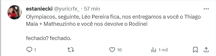 A situação pode se agravar ainda mais nesse quesito. Isso porque, de acordo com informações do jornalista Venê Casagrande, o Olympiacos fará uma proposta buscando a contratação do zagueiro Léo Pereira.