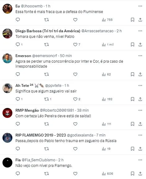 Três reforços estão praticamente certos: Matias Viña, Nicolas De La Cruz e o zagueiro Léo Ortiz. No entanto, o monitoramento de boas possibilidades de contratações não para e, embora Ortiz seja um nome garantido, a zaga pode ganhar mais contratações.