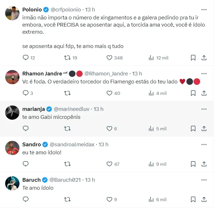 Vale destacar, inclusive, que Gabigol elogiou o trabalho da comissão técnica, comandada por Tite, e ao elenco pela forma como retornou aos gramados e o cuidado que tiveram ao colocá-lo dentro de campo.