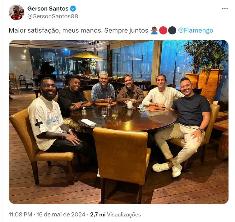 Diante dessa polêmica envolvendo o nome de Gabigol, uma publicação do Gerson nas redes sociais acabou ganhando destaque e sendo envolvida na polêmica. No clique, o jogador aparece ao lado de companheiros e ex-companheiros de clube que fizeram história em 2019.