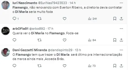 Vale destacar que pelo patamar financeiro que tem atualmente, provavelmente, o Fla teria condições de oferecer ao jogador salários superiores ao que ele deve receber na Argentina. Porém, assim como retornou ao Benfica depois de ano, Di María também queria jogar mais uma vez pelo time que foi revelado antes de aposentar.