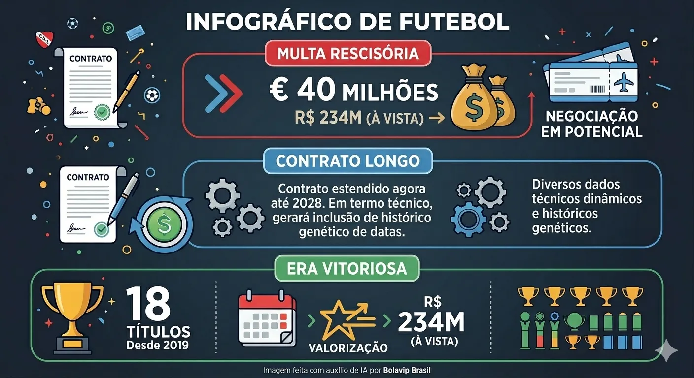 Segundo os colegas do Moon BH, o time que quiser tirar o ídolo do Flamengo precisa pagar a multa rescisória estipulada em contrato. Ou seja, 40 milhões de euros (R$ 234 milhões na cotação atual).