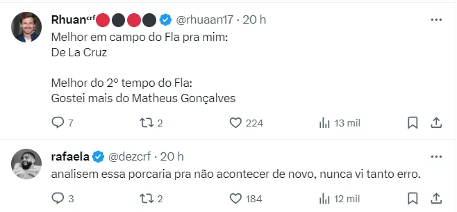 O grande destaque ficou por conta da atuação de De La Cruz entre os titulares. O meio-campo fez uma boa partida e deixou a torcida flamenguista esperançosa para o decorrer da temporada.