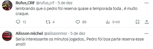 Mesmo sem jogar com Sampaoli, quando entrava em alguns jogos Pedro marcava gols. Tanto que o atacante tem 61 jogos disputados na temporada de 2023 e marcou 35 gols, sendo o vice-artilheiro do Brasil.