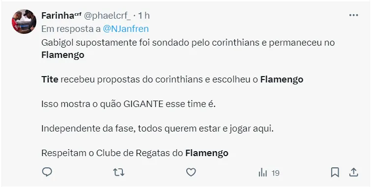 Mas, a diretoria Rubro-Negra segue no mercado em busca de qualificar a equipe. Com isso, vários nomes vêm sendo ventilados nos bastidores, dentre eles, o de Maycon, do Corinthians, que chegou a ter uma proposta oficial pela contratação do jogador.