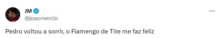 O argentino mais acumulou confusões do que bom desempenho e êxitos. Agora, a cartada final de Rodolfo Landim: Tite, que trabalhou pela última vez na Copa do Mundo de 2022, com a Seleção Brasileira. Na sua primeira partida à frente do Flamengo, vitória por 2 a 0 contra o Cruzeiro, fora de casa. Autor do segundo gol, Pedro não poupou elogios ao novo chefe.