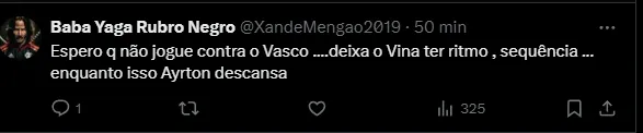 Com a entrada do lateral uruguaio, a torcida flamenguista ficou de olho na atuação do jogador que, para a maioria, convenceu e pode ganhar mais chances: “para mim é questão de tempo para o Viña rouba a titularidade do Ayrton Lucas“.
