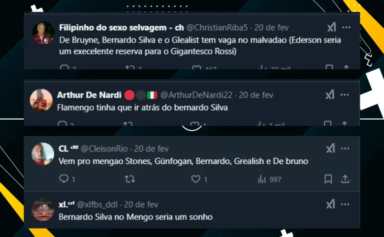 Por fim, apesar de toda a dificuldade e de Bernardo ter contrato com os ingleses até o meio de 2026, os flamenguistas não perderam a oportunidade de mandar recado a José Boto para pedir a contratação, mas nenhuma conversa foi aberta. Veja a repercussão: