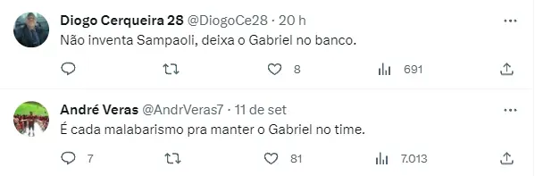 Isso porque o Flamengo vive uma crise mesmo se classificando para a final da Copa do Brasil. Para o jogo diante do Furacão, Sampaoli deve escalar um ataque com Gabigol Pedro, reeditando o poder ofensivo que maltratou a defesa do Athletico-PR em 2022. Se o retorno da dupla traz lembranças do título da Libertadores da última temporada para uns, Gabriel Barbosa acabou recebendo um tratamento surpreendente na visão dos paranaenses.